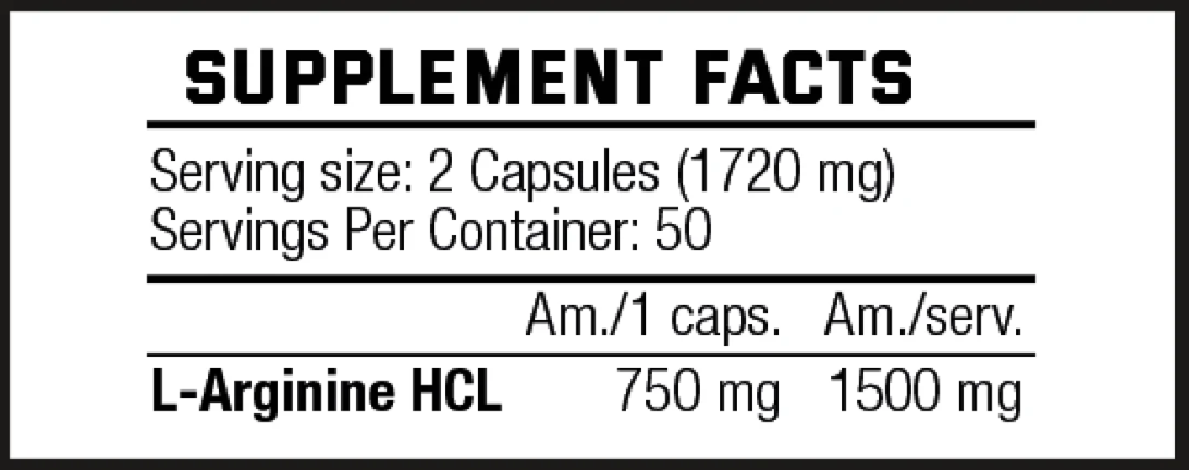 L-Arginine is a conditionally essential amino acid, meaning that under normal circumstances it can be synthesized by the human body to cover its needs. In case of poor nutrition or heavy physical exertion, the biosynthetic pathway may not produce sufficient quantities of Arginine and some must be consumed from the diet or from supplements. Being the only precursor of Nitric Oxide (NO) and important precursor of Creatine, Arginine supplementation is a general practice among athletes, bodybuilders. Taking high dose capsules is the easiest way to cover an increased demand for Arginine.